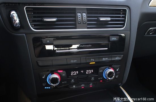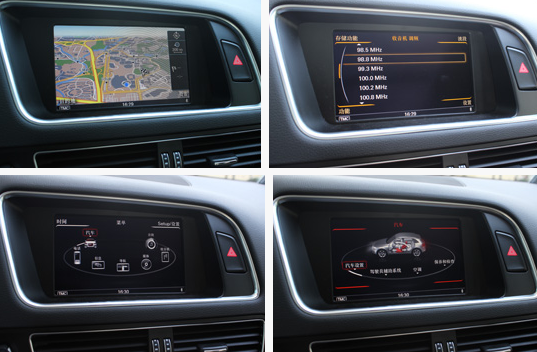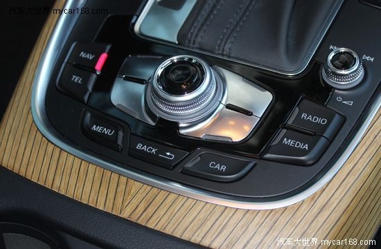 中控臺位置布局也相當簡潔,自上而下分別為7英寸彩色顯示屏、空調吹風口、娛樂設備及空調控制區域,錯落有致的風格也便于控制,可謂兩全其美。其中高清液晶顯示屏集成了倒車影像、3D導航、娛樂影音等系列功能。與布置在換檔桿后面的MMI多媒體交互系統控制界面搭配使用,發揮出具大的潛能,不論是車輛的基本設置抑或導航設定等,都貼近日常的使用習慣,給人貼心舒適的感受。