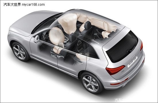 當然,新Q5車廂內配備的全尺寸安全氣囊在發生碰撞時有效減少傷害,它以環抱式的分布形式布置在車廂四周,如前排駕駛座與乘客安全氣囊、前后排側安全氣囊等,為駕乘人員提供全方位的保護。