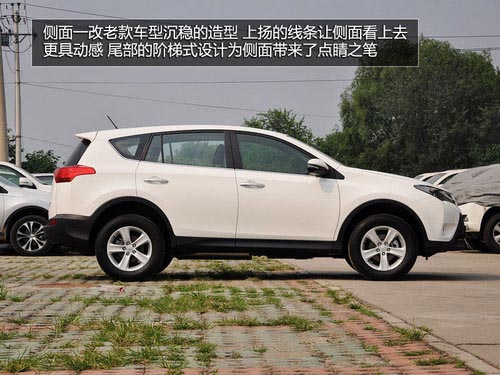 全新風格的前臉設計讓它看上去更具運動風格整個前臉的造型趨于時尚的轎車風格,蜂窩式的中網被中間豐田logo一分為二,面積也不像傳統意義上的SUV那樣寬大,底部的一條鍍鉻裝飾更是體現了其“都市”的特點。頭燈比現款車型更加富于變化,也更符合現代潮流。