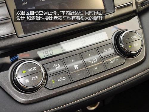 在配置方面,新款RAV4高配車型的表現還是比較出眾的,高配車型上將會配備車道偏離預警和盲區檢測等科技感非常強的安全配置,中控區的按鍵布局十分規整,沒有過多的雜亂的控制按鍵,6.1寸的屏幕配合上周為大號的按鍵反射出一種簡潔的豪華感。