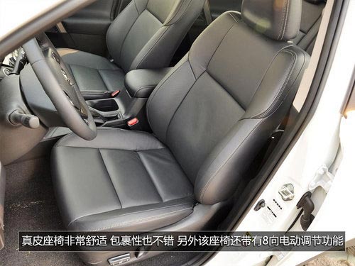 運動化的真皮座椅看上去很普通,內部填充物也比較柔軟,但當車行駛起來時卻能獲得不錯的支撐性,這點還是比較意外的。真皮選用了不錯的材質,很柔軟也很細膩,邊角的縫合處也體現了不錯的制造工藝。主駕駛座椅帶有八向電動調節,不過比較可惜的是副駕駛全系都為手動調節。