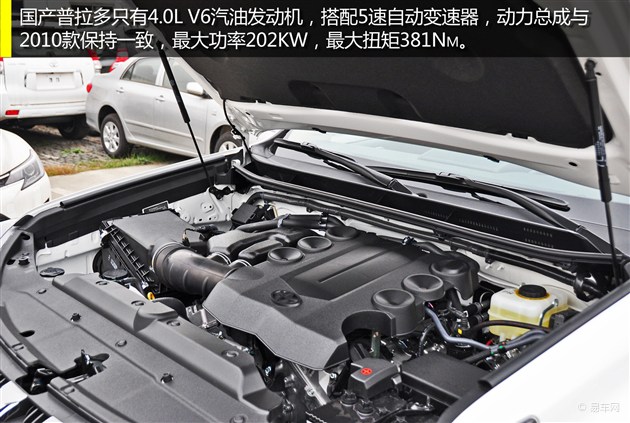 國產普拉多只有4.0L V6一款汽油發動機,搭配5速自動變速器,動力總成與2010款保持一致,規格不算高,最大功率202KW,最大扭矩381Nm。沒有花俏的缸內直噴、增壓技術,但是全系全時四驅、中央差速鎖加上豐田成熟穩定的技術,帶來更加可靠的實用性,在駕駛上也讓車主更放心。