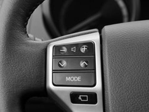 方向盤完全照搬老款普拉多上的造型,普拉多VX上的方向盤由真皮與桃木相結合,還有方向盤加熱功能,其手感非常的舒適。多功能按鍵的設置以及配備和老款普拉多一樣,使用起來很順手。