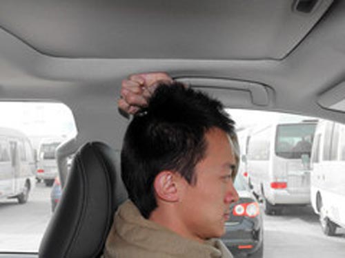 保證前排座椅位置不變,體驗者坐入后排后,腿部空間擁有超過一拳的距離,頭部空間依然是一拳的距離。
