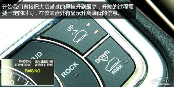 在實地越野測試中,大切諾基作為一臺城市型SUV來說,離地間隙、接近角和離去角算的上是優秀了,所以在普通坑洼較多的路面你還可以玩一把飛馳,另外需要注意的是深溝還是必須避開,尤其的是下坡時。整體來說大切諾基的越野能力在城市SUV中算是出色了,但想要挑戰更極限的越野,必須把嬌氣的公路輪胎換掉。