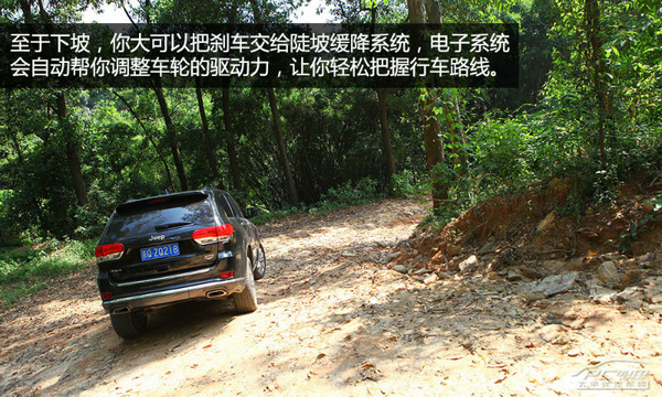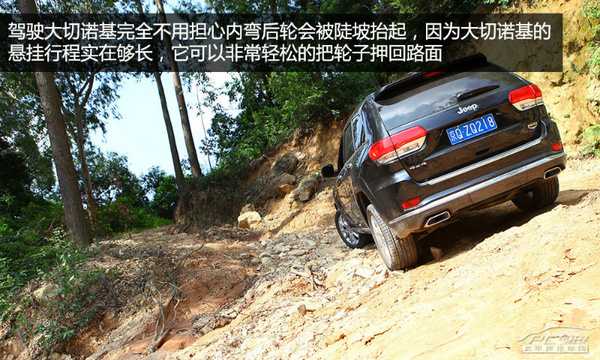在爬坡轉彎中,駕駛大切諾基完全不用擔心內彎后輪會被陡坡抬起,因為大切諾基的懸掛行程實在夠長,它可以非常輕松的把輪子押回路面,你所需要做的就是避開尖石,修正好行車路線即可,非常輕松。