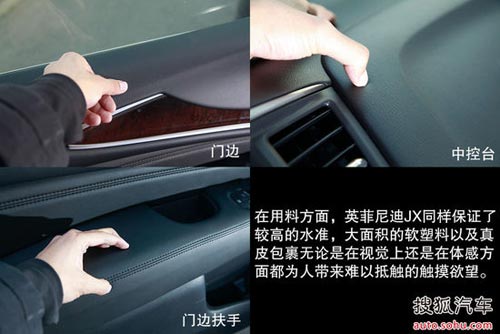 在用料方面,英菲尼迪JX同樣保證了較高的水準,大面積的軟塑料以及真皮包裹無論是在視覺上還是在體感方面都為人帶來難以抵觸的觸摸欲望。