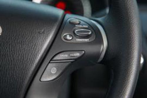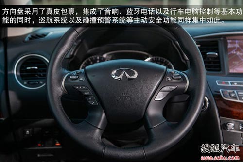 英菲尼迪JX35的方向盤采用了真皮包裹,手感極佳。在方向盤中集成了音響、藍牙電話以及行車電腦控制等基本功能的同時,巡航系統以及碰撞預警系統等主動安全功能同樣集中如此。