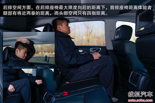 第二排座椅可以變化多種組合以滿足不同出行需求,值得一提的是,第二排座椅可前后手動調節距離,這樣可以使后兩排的空間充分發揮。后排空間方面,在后排座椅最大限度向后的距離下,前排座椅距離體驗者腿部有將近兩拳的距離,而因為流線型下劃的設計頭部空間只有四指距離。