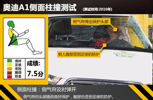 第三名:奧迪A1 側(cè)面柱撞測試成績7.5分