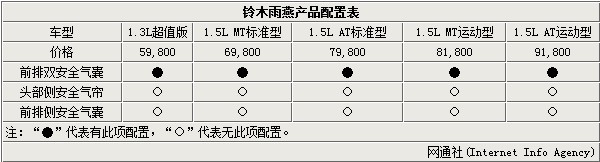 第四名:注意!鈴木雨燕僅提供前排雙安全氣囊