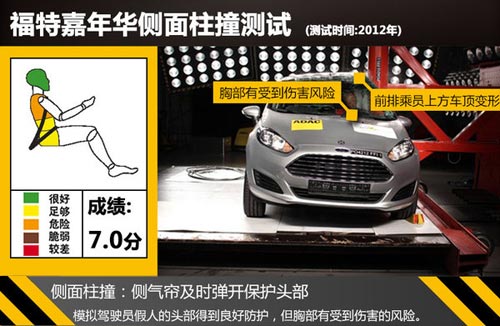 第五名:福特嘉年華 側(cè)面柱撞測試成績7.0分