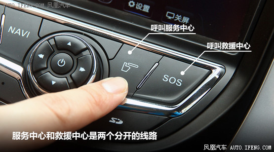 在操作面板的右邊提供了兩個功能按鍵,這兩個按鍵分別可以一鍵接通服務中心或救援中心的電話,當然這個功能使用的也是用戶手機的電話費用。通過服務中心,用戶可以獲取導航信息、周邊設施信息等,服務中心會把所需要的導航路線發送到車輛上,省去了用戶自己查找定位的麻煩。