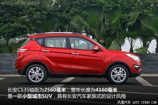 長安CS35軸距為2560毫米,整車長度為4160毫米,是一款小型城市SUV。從外形設計上看,CS35具有長安汽車家族式的設計風格,除了推出不久的致尚XT之外,悅翔、逸動等車型基本上都具有統一的設計理念。
