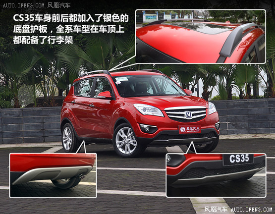 當然,CS35上也加入了SUV獨有的設計元素,比如車身前后都加入了銀色的底盤護板,雖然城市SUV的實際意義不大,但是視覺感受上會顯得更有力量感。全系車型在車頂上都配備了行李架,這也是顯示SUV身份的重要元素。
