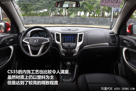 內飾方面,CS35的工藝也比較令人滿意,雖然材質上仍以塑料為主,但是達到了較高的精致程度,并且設計上也很具美感,再加上新加入的in Call系統,讓CS35的內飾看起來更加前衛了。