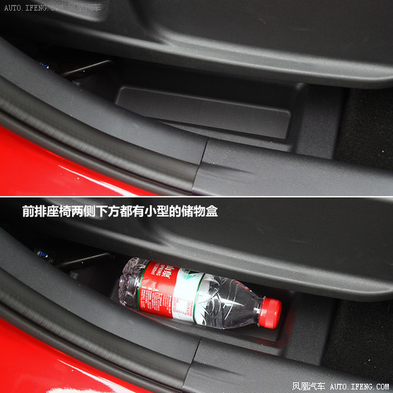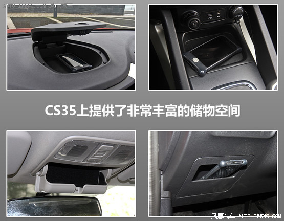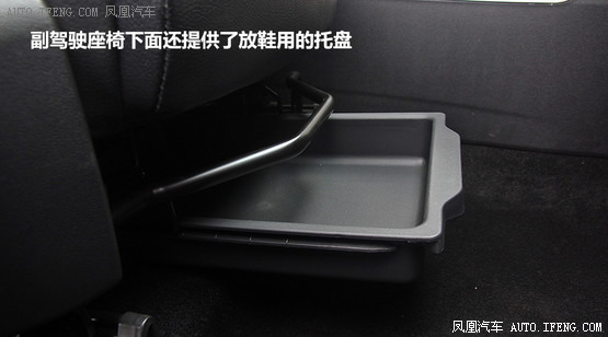 而在一些想不到的地方CS35也提供了儲物空間,比如前排座椅兩側下方都有小型的儲物盒,在副駕駛座椅下面還提供了放鞋用的托盤,這樣穿高跟鞋的女士就可以將開車穿的平底鞋放在這里隨時來更換了。從儲物空間的情況就能夠看出,CS35在實用性方面有其獨特的優勢。