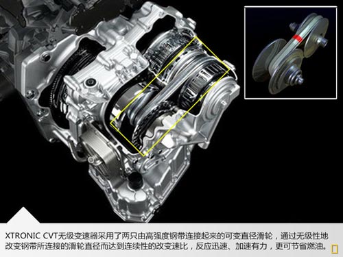 在動力系統方面,全新奇駿依然搭載兩款排量分別為2.0L和2.5L的自然吸氣引擎,但最大功率相對于現款車型均有提升,分別達到110KW和137KW。同時新車配備的新一代Xtronic CVT無級變速箱可謂看點多多,相對上一代CVT變速箱,新Xtronic CVT變速箱有三大革新——摩擦阻力減少、變速比范圍提高以及燃油經濟性也提高了10%以上。根據工信部公布的數據,新奇駿2.0L版和2.5L版的百公里油耗分別為7.5L和8.3L。