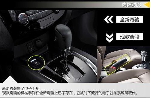 相對于現款奇駿缺少的一鍵啟動系統、電子駐車系統以及感應式電動尾門等時下流行的舒適智能裝備,一個不少的在新一代奇駿全部出現了。