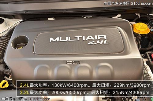 Jeep自由光不同的車型搭載搭載了不同的發動機,它分別是2.4L都市版、2.4L豪華版、2.4L和精銳版搭載的2.4L MultiAir2? Tigershark? I4 發動機,它的最大功率為130kw/6400rpm,最大扭矩為229Nm/3900rpm,其工信部綜合油耗為8.8L。和3.2L Trailhawk?搭載的3.2L Pentastar? VVT V6 發動機,最大功率200kw/6500rpm,最大扭矩315Nm/4300rpm,工信部綜合油耗為10升。