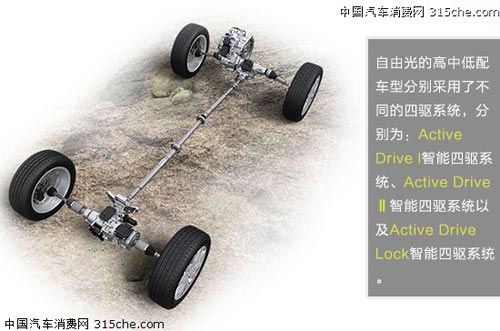 自由光的四驅系統帶有自動、雪地、運動、沙地/泥地四種路況模式,另外,頂配車型還有"巖石路況"模式。