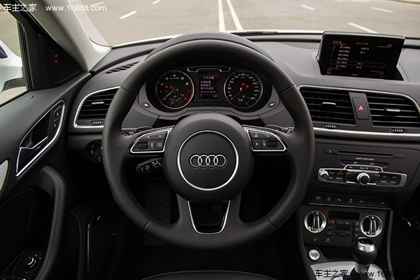 Q3的車廂給人的第一感覺就是非常簡潔、清爽,中控沒有繁雜按鍵,做工用料也沒有因為是國產(chǎn)而掉價。作為入門級的SUV來說,Q3的車廂氛圍還是能給乘客能帶來一種豪華、精細的感覺。