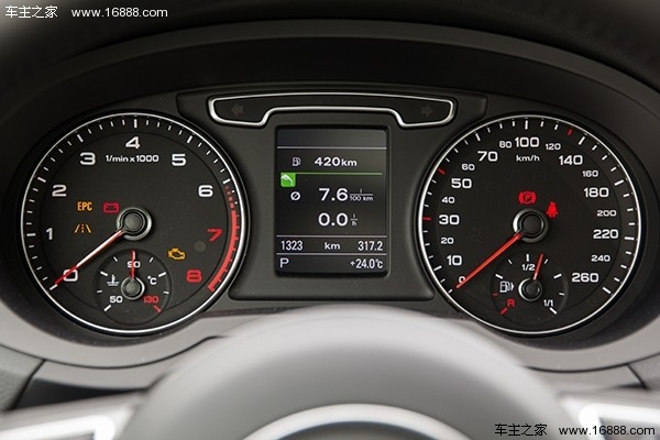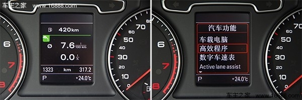 儀表盤是傳統(tǒng)的奧迪風格,黑底白字,易讀性高,液晶顯示屏的信息也非常非常,但設計感不強,沒有像奧迪的車燈的設計那么炫目
