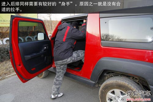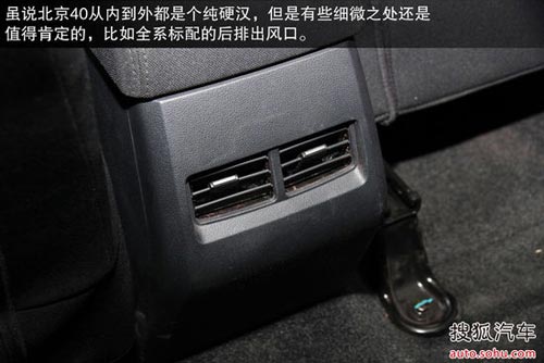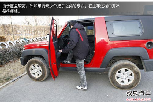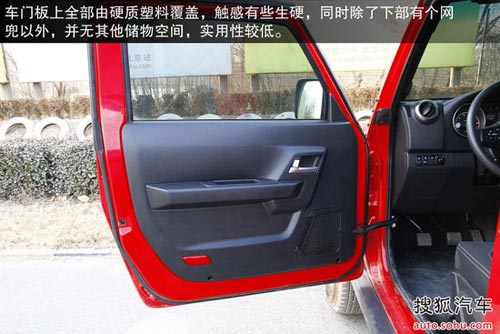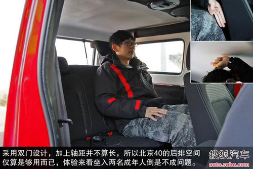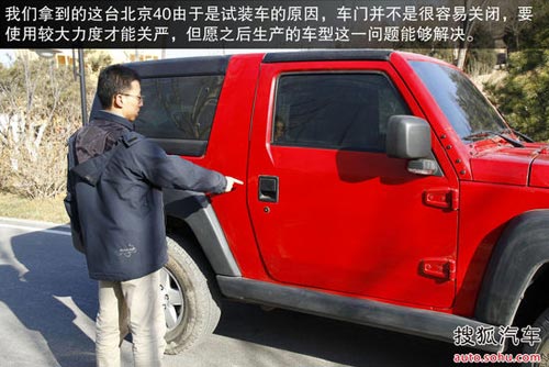 由于我們拿到的這臺北京40是試裝車,其車門并不是很容易關閉,需要使用較大力氣才能關緊,但愿這只是個案吧。由于車輛底盤較高并且車內沒有相應的扶手,所以上下車時稍有不便。不過如果您是一個越野愛好者,相信能夠獲得出色的通過性才是關鍵。