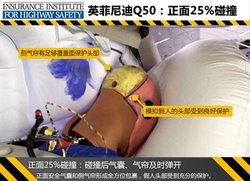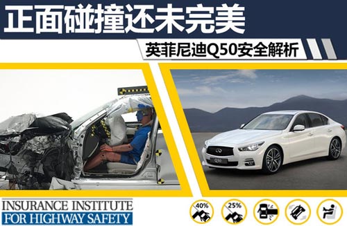 2014年被英菲尼迪定義為“全力出擊”的一年,其在中國市場產品攻勢也將進一步升級。集運動型轎車設計、卓越性能和領先技術于一身打造的全新英菲尼迪Q50就是即將登陸中國市場的車型之一。近日此車在美國進行了碰撞測試,網通社發現Q50在正面25%碰撞測試中模擬假人左側小腿有受到傷害的風險,此車在小面積正碰時對車內乘員的保護還未盡完美。