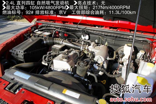 首先我們先來看看這款北京40在公路上的駕駛表現(xiàn),動(dòng)力方面搭載了一臺(tái)2.4L發(fā)動(dòng)機(jī),代號(hào)為G4CA,由沈陽新光提供,最大功率為105kW/4800rpm,最大扭矩217N·m/4000rpm,技術(shù)上沒有什么優(yōu)勢(shì),參數(shù)水平在同級(jí)自主車中處于中等水平,目前還沒有得到要加入其它動(dòng)力系統(tǒng)的消息。