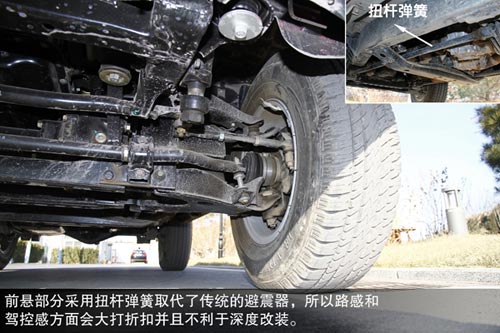 不過由于前懸部分采用扭桿彈簧取代了傳統(tǒng)的避震器,所以路感和駕控感方面會(huì)大打折扣,并且如果您想把車輛升高或是深度改裝,這樣的結(jié)構(gòu)可能會(huì)讓改裝過程變得更加困難。