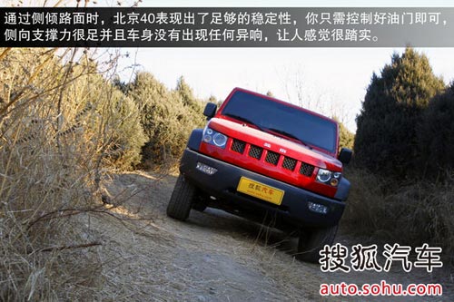 通過側(cè)傾路面時(shí),北京40表現(xiàn)出了足夠的穩(wěn)定性,你只需控制好油門即可,側(cè)向支撐力很足,并且車身沒有出現(xiàn)任何異響,讓人感覺很踏實(shí)。