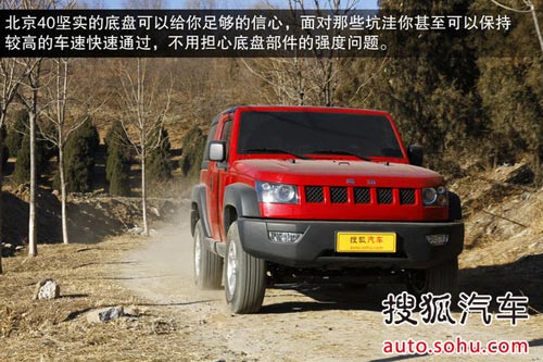 而在之后的越野場(chǎng)地測(cè)試中,我們將會(huì)經(jīng)歷駝峰路、炮彈坑以及側(cè)傾路等項(xiàng)目,為了看看車輛的實(shí)力,首先我們嘗試著采用兩驅(qū)模式,在純后驅(qū)模式下,這些科目基本不會(huì)對(duì)北京40造成威脅,當(dāng)然這也要得益于其強(qiáng)大的接近角、離去角以及較高的底盤。