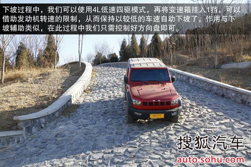 下坡過程中,我們可以使用4L低速四驅(qū)模式,再將變速箱掛入1擋,可以借助發(fā)動(dòng)機(jī)轉(zhuǎn)速的限制,從而保持以較低的車速自動(dòng)下坡了,作用與下坡輔助類似,在此過程中我們只需控制好方向盤即可。