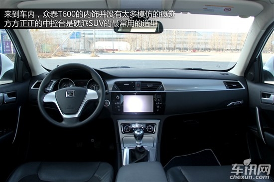 眾泰T600的車內并沒有見到任何模仿的痕跡,純自主設計的內飾帶有典型的SUV風格,純黑色的顏色搭配給人感覺干凈、利落。雖然大部門材質都以硬質塑料為主,但做工方面尚算精細,同級車型中屬于中等水平。