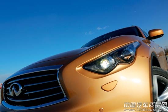 作為海洋中殘暴孤傲的頂級捕食者,若想馴服為人所用,幾乎是個不可能完成的任務,正如英菲尼迪QX70這款車,即使國內頂級的賽手劉斌老師,在馴服的初期也并非一帆風順。英菲尼迪XQ70擁有同級罕見的21寸超大輪轂,265/45 R21的車輪提供了猶如G37般的駕感,與調校硬朗的懸掛匹配,使得QX70在中速巡航的過程中,車輛的方向很容易受到路面微小不平的影響,一點點車轍就會導致方向盤敏感地跟著順向擺動,所以,在單手駕駛時,會給人不太放心的感覺。起初我們認為原因是提車與試駕分別處在兩個時間段,十幾度的溫差,導致胎壓增大,胎感變硬,再加上QX70具有跑車基因的硬朗懸掛,使方向容易受到路面哪怕是壓出的微小車轍的影響,但經過專業賽道技師對四輪胎壓重新校正后,這種情況依舊存在,好吧!駕駛它你必須打起精神,即使馴服的猛獸,骨子里也會保留幾分野性,何況“鯊”乎,英菲尼迪QX70在用時刻緊繃的神經面對著來自油門踏板動輒毫厘的變化。