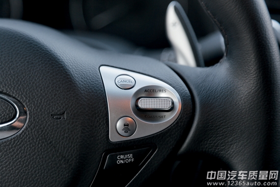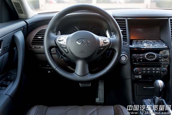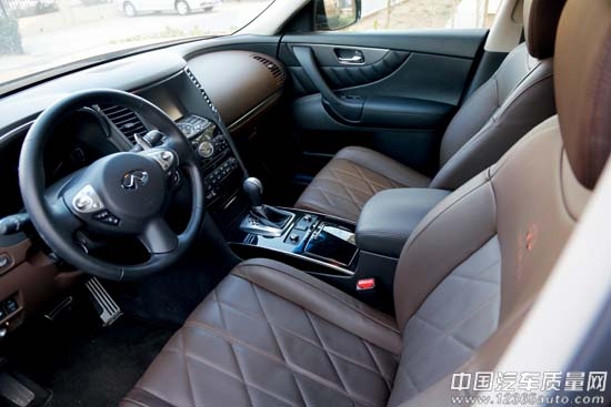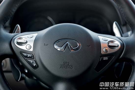 之前吐槽的方向盤過于靈敏的表現,在賽道上則是一種得心應手的路感回饋狂躁的發動機動力輸出,7AT自動變速器高效的動力傳遞,特別是極速降擋后繼續補油來維持的較高轉速,使得QX70在出彎的加速也能迅速得到最大功率與最大扭矩的支持。超跑風格的動力輸出,恍若駕駛著坐姿較高的GTR,再加上巨大的輪轂與調校稍稍偏硬的懸掛,保持了較好的車身姿態。硬朗的表現使得劉斌老師贊不絕口“別看這是一臺SUV,完全可以把跑車的駕駛技巧用于其中,而且你所感受到的,也正是一部血統純正的跑車所帶來的不折不扣的駕駛感受,不錯,我喜歡!”