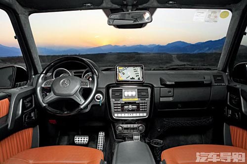 在輕柔的Comfort“樂章”中,奔馳7G-Tronic自動變速器舒緩地向我“講述”著G63 AMG的前世今生。它的始祖誕生于1979年,當時奔馳打造G級的第一代車型W460是為了競爭聯邦德國的半噸級軍車項目,競標失敗之后以民用車的身份投放市場。奧地利格拉茨工廠出品和軍車背景成為奔馳G級30年不變的固有傳統。同樣是由于它的軍車背景,奔馳G級的內飾之前一直與精致、豪華沒有交集,堅固、簡潔、實用才是它的立足之本,而外觀設計則一直沿用初代軍車的“方盒子”造型。“艱苦樸素”的軍車氛圍直到奔馳將G級與AMG相結合之后才得以改觀,在W463 G63 AMG上,奔馳嫻熟地利用實木內飾、縫線座椅、鍍鉻筒狀儀表盤、中央7英寸液晶顯示屏、新一代COMAND影音娛樂系統等高科技配置將它的氣質塑造成了豪華越野車。質感出眾的銀色“三把鎖”開關和手套箱上未曾改變的扶手則依稀透露著它內心深處的軍車情懷。