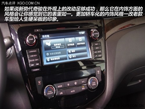 環(huán)抱式的中控臺(tái)設(shè)計(jì)可以說(shuō)是完全顛覆了老款奇駿的風(fēng)格,在保證實(shí)用性的同時(shí),新款奇駿的內(nèi)飾更注重品質(zhì)的提升,鍍鉻裝飾、烤漆工藝都顯示出嚴(yán)謹(jǐn)?shù)淖龉ぃw而言,內(nèi)飾風(fēng)格逐漸向家轎化靠攏。