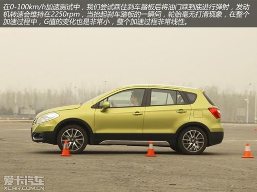 從1.6升自然吸氣發(fā)動(dòng)機(jī)搭配CVT變速箱的動(dòng)力總成就可以看出,鋒馭并不是一款強(qiáng)調(diào)性能的車型,而在實(shí)際測(cè)試中的表現(xiàn)也是如此。在0-100km/h加速測(cè)試中,我們嘗試踩住剎車踏板后將油門踩到底進(jìn)行彈射,發(fā)動(dòng)機(jī)轉(zhuǎn)速會(huì)維持在2250rpm,當(dāng)抬起剎車踏板的一瞬間,輪胎毫無打滑現(xiàn)象,在整個(gè)加速過程中,G值的變化也是非常小,整個(gè)加速過程非常線性。