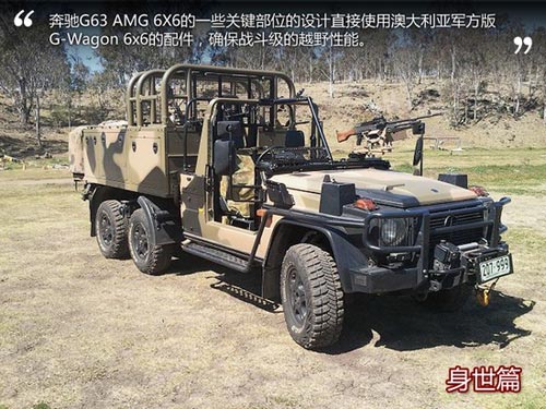 這也是奔馳1979年推出G系硬派越野車以來,G系列的首款非四輪民用化產品,其設計雛形和思路來自于奔馳曾經為澳大利亞陸軍所開發的G-Wagon 6x6車型,這款輕型的越野車擁有多種不同的版本,包括單駕駛室、雙駕駛室以及輕卡等,而強大越野能力以及較高的可靠性獲得了澳大利亞軍方的首肯。