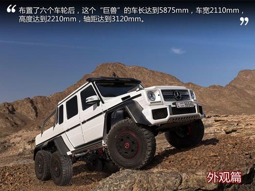 當你第一眼看到G63 AMG 6x6,絕對會被它的尺寸所嚇倒!在布局了六個車輪之后,其車長達到5875毫米,車寬達到2110毫米,高度達到了驚人的2210毫米。