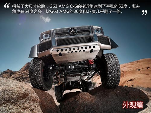得益于大尺寸輪胎,G63 AMG 6x6的接近角已經達到了夸張的52度,離去角也有54度之多,這比已經很夸張的G63 AMG的36度和27度幾乎翻了一倍,這就注定了G63 AMG 6x6將有不俗的實力。