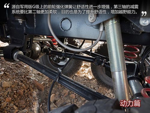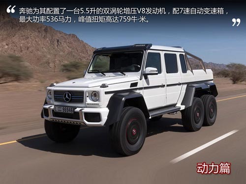 六輪版G級同大部分普通G系列采用了大量通用件,并搭載了同樣的動力總成和變速箱系統,一些關鍵部位的設計直接使用澳大利亞軍方版G-Wagon 6x6的配件,這樣一來,在不增加開發難度、不增加太多成本的情況下大幅度提升利潤的做法,自然會獲得奔馳董事會從上至下的一致支持。