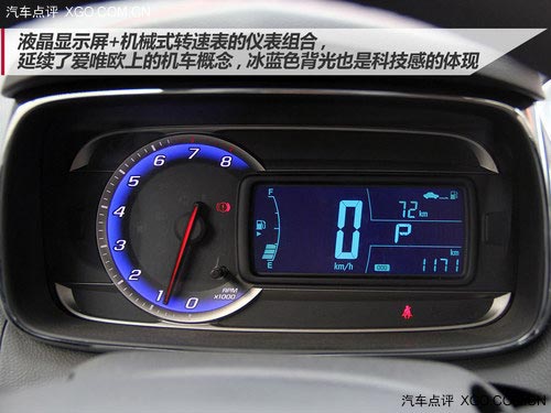 液晶顯示屏+機(jī)械式轉(zhuǎn)速表的儀表組合,延續(xù)了愛唯歐上的機(jī)車概念,同樣是一處年輕化的體現(xiàn),冰藍(lán)色背光也是科技感的體現(xiàn)。