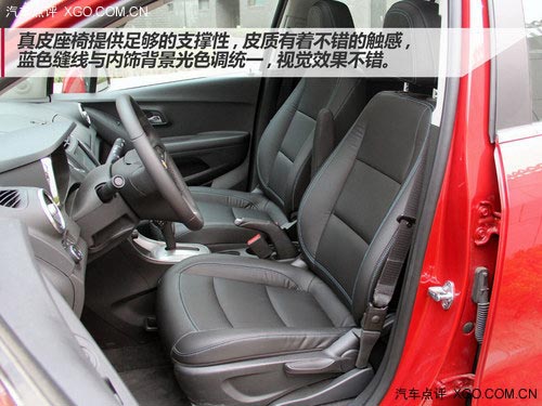 真皮座椅提供足夠的支撐性,皮質(zhì)有著不錯(cuò)的觸感,藍(lán)色縫線與內(nèi)飾背景光色調(diào)統(tǒng)一,視覺效果不錯(cuò)。實(shí)拍的車型為創(chuàng)酷TRAX的頂配車型,但主駕駛僅采用手動(dòng)調(diào)節(jié),但提供了單獨(dú)的扶手,可以看出創(chuàng)酷TRAX更注重務(wù)實(shí)配置的提升。