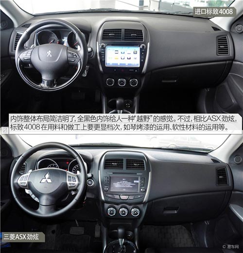 標致4008是基于進口三菱ASX勁炫平臺打造而成,在內飾上,延續了三菱ASX勁炫的設計,無論是中控布局還是方向盤、儀表盤,兩者都極其相似。