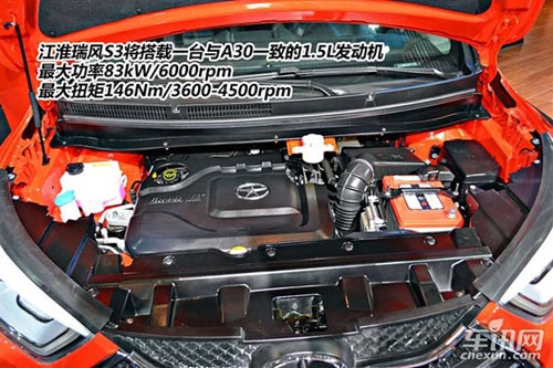 動力方面,江淮瑞風S3將搭載一臺與A30一致的1.5L發動機,最大功率83kW/6000rpm,最大扭矩為146Nm/3600-4500rpm。