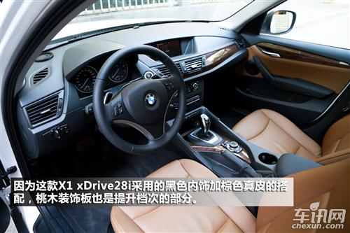 _ueditor_page_break_tag_也許是白車身的原因,在這款國產X1身上,沒有太多活力元素,直到進入車內,才感覺到一絲豪華運動色彩。因為這款X1 xDrive28i采用的黑色內飾加棕色真皮的搭配,桃木裝飾板也是提升檔次的部分。它的整體做工和進口X1并沒有區別,用料實在、做工精良。