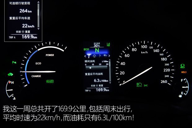 油耗表現是NX 300h的一大拿手好戲,上一周我開了169.9公里,其中大部分是上下班高峰時期,周末跑了趟郊區,全程使用ECO模式行駛,平均時速只有22km/h,而最終的表顯油耗卻只有6.3L/100km。對于一臺超過1.8噸的中型SUV而言,絕對是令人超級滿意的表現,所以這篇的題目我直接給出了真省油的結論!另外,NX 300h是一臺能讓你踏踏實實開的車,行駛在路上心態都會變得平穩,一周的時間似乎還治愈了我輕微的路怒癥。